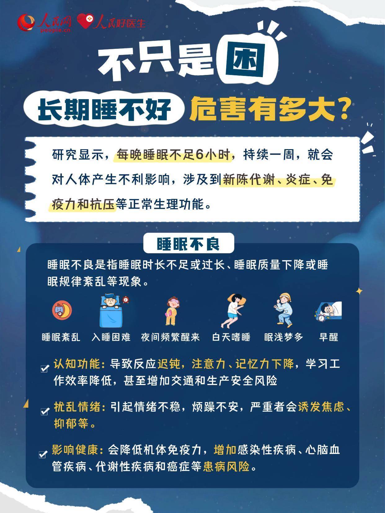 中国睡眠研究会《2025年中国睡眠健康调查报告》显示,我国18岁以上人群,近一半有睡眠困扰,超3亿人存在睡眠障碍,而且睡眠问题越来越年轻化。别再把失眠当小事,睡不好,正是拖垮健康的重要元凶。